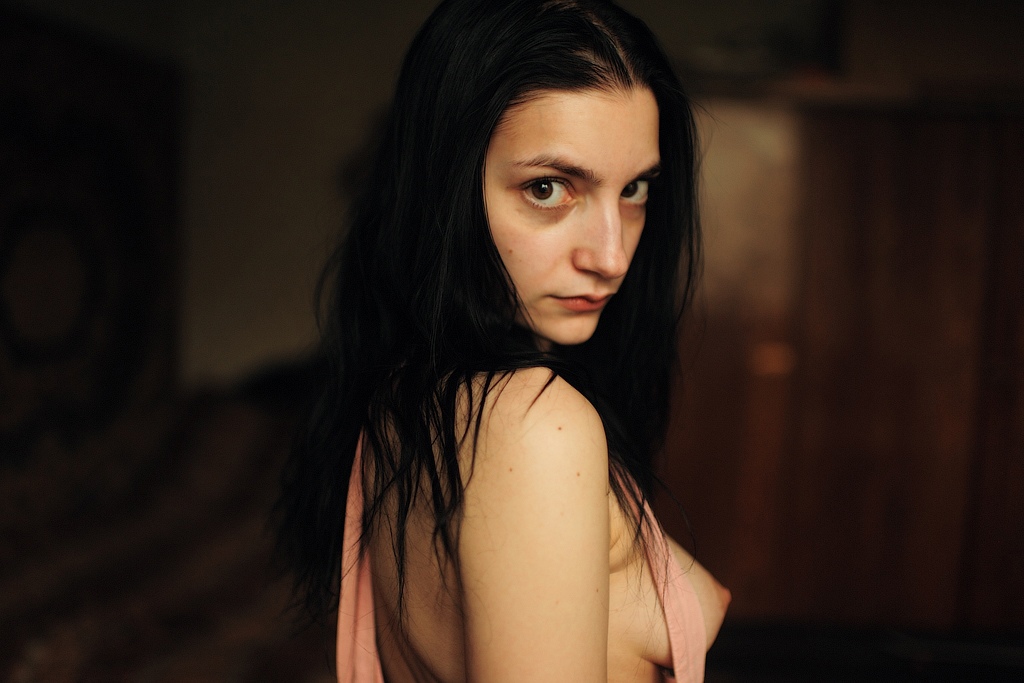С горящими глазами и трепещущим телом, лаская себя,